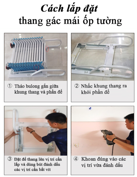 Thang gác ốp tường lắp trong nhà và ngoài trời rất tiện lợi và chắc chắn, thời gian lắp đặt nhanh và dễ dàng.