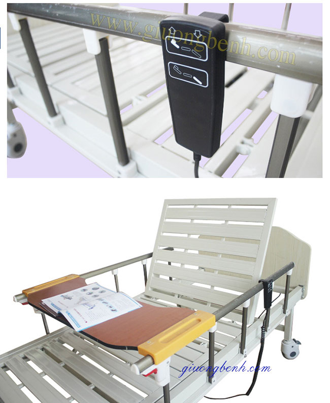 Giường bênh điều khiển bằng điện có 2 chức năng gồm: nâng cao đầu và nâng cao chân, giành cho những bệnh nhân có yêu cầu nằm ở tư thế cao.