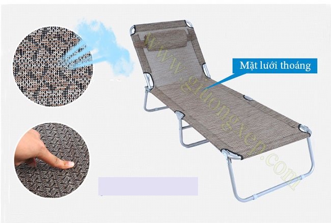Ngủ trưa văn phòng sai tư thế có thể gây tác dụng xấu đến lưng, cổ, vai, gáy... ảnh hưởng xấu đến sức khỏe và công việc của bạn.Giường xếp được làm từ bạt lưới chuyên dụng, siêu bền, thoáng mát, không thấm nước.Khung bằng thép sơn tĩnh điện; có thể nằm thẳng hoặc nâng đầu như ghế tựa.Có tính cơ động cao, xếp gọn được dễ dàng khi không sử dụng, tiện sử dụng cho nhân viên văn phòng.Ngoài ra, giường xếp còn phù hợp với nhà ở có không gian hẹp hay khách sạn, bệnh viện... dùng làm giường dự phòng.Giường xếp văn phòng có kích thước sử dụng: chiều cao: 0.3m; Chiều rộng: 0.63m, Chiều dài: 1m93Giường xếp văn phòng có kích thước gấp gọn: bề dày: 0,13m; Chiều rộng: 0.63m, Chiều dài: 0.7mTrọng lượng: 5,5 kg; Tải trọng: 100 kgHình ảnh minh họa các tư thế sử dụng giường