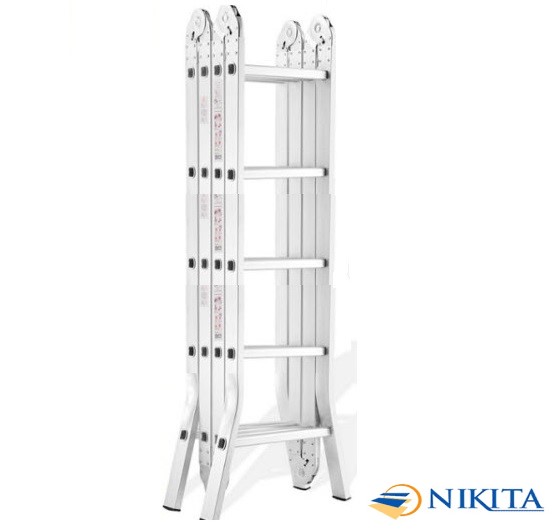 Thang nhôm Nikita TGA58 thuộc dòng thang gấp khúc chữ M đa năng được sản xuất trên dây chuyền công nghệ hiện đại của Nhật Bản. Đây là loại thang chắc chắn chất lượng tốt với bậc thang gấp 4 khúc kéo dài thẳng đến 5m8, có thể dùng trong nhà máy công trình có yêu cầu về độ cao lớn.