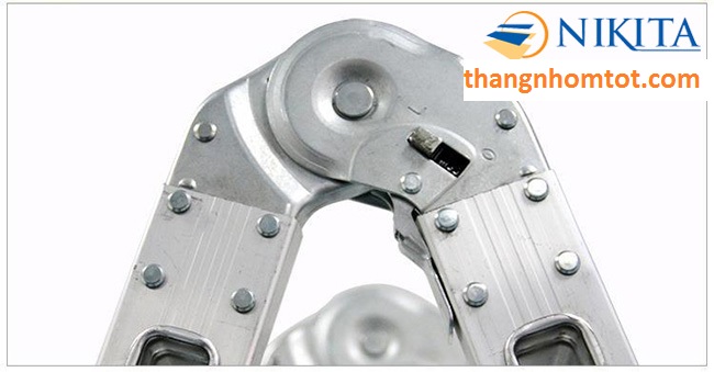 Thang nhôm gấp Nikita được trang bị khoá lẫy tự động được làm từ thép hợp kim chắc chắn đảm bảo độ chịu lực tại các mối nối, khi mở ra sẽ tự động lẫy khoá chốt lại. Kéo khoá khi gập lại nhẹ nhàng giúp chuyển đổi các cấu hình của thang dễ dàng.