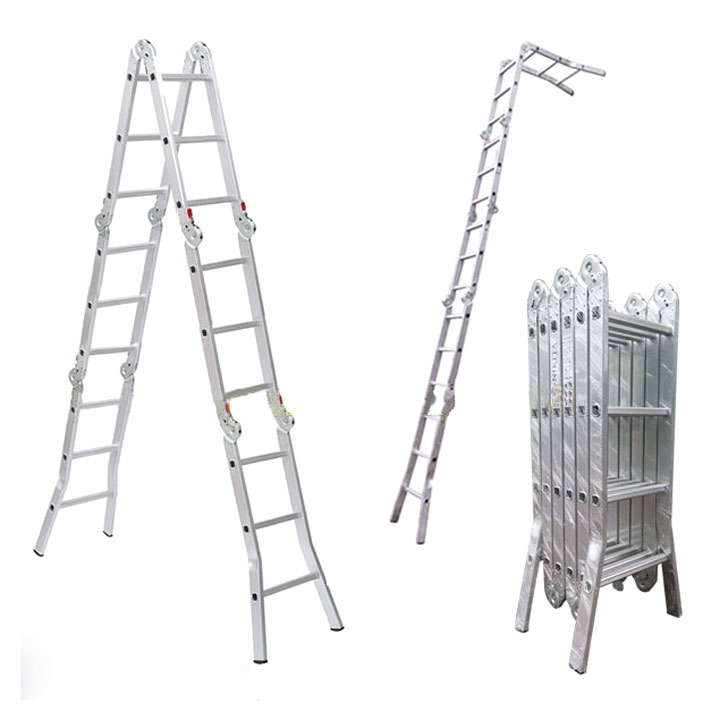 Một lợi thế nổi bật của thang gấp 6 khúc Nikita Nik46A thang gấp Nikita có thể chuyển đổi được nhiều cấu hình sử dụng khác nhau như chữ A, I, L, M, U, ... bằng những thao tác đơn giản đáp ứng nhu cầu đa dạng của người sử dụng. Thang có thể tạo thành các giàn giáo đa năng với các chiều cao khác nhau.