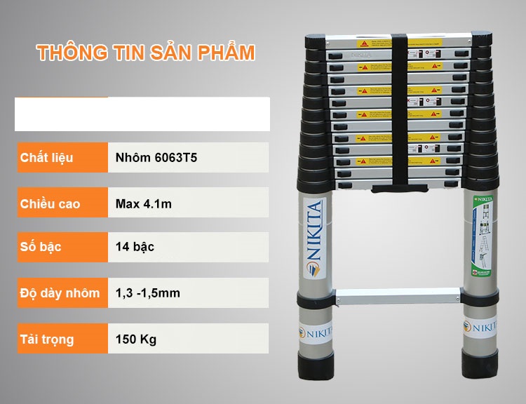 Thang nhôm rút Nikita R41 - 4m1 sản xuất trên dây chuyền công nghệ tiên tiến của Nhật Bản, theo tiêu chuẩn chặt chẽ của châu Âu đạt chất lượng quốc tế. Thang nhôm Nikita được người tiêu dùng tại nhiều quốc gia ưa chuộng. Sản phẩm ngày càng tạo uy tín và niềm tin tại thị trường Việt Nam.