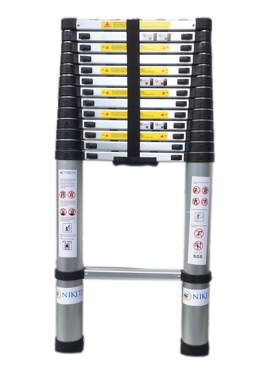 Điều chỉnh độ cao linh hoạt: Thang nhôm rút gọn Nikita với chiều dài tối đa đến 5m8, với 14 bậc thang với hệ thống chốt khóa tự động từng bậc, có khả năng rút ngắn lại chỉ còn 1.1 mét vô cùng tiện lợi và gọn gàng. thang kéo dài tuỳ chình từng bật thang nên bạn có thể điều chỉnh độ cao linh hoạt phù hợp với nhu cầu sử dụng.