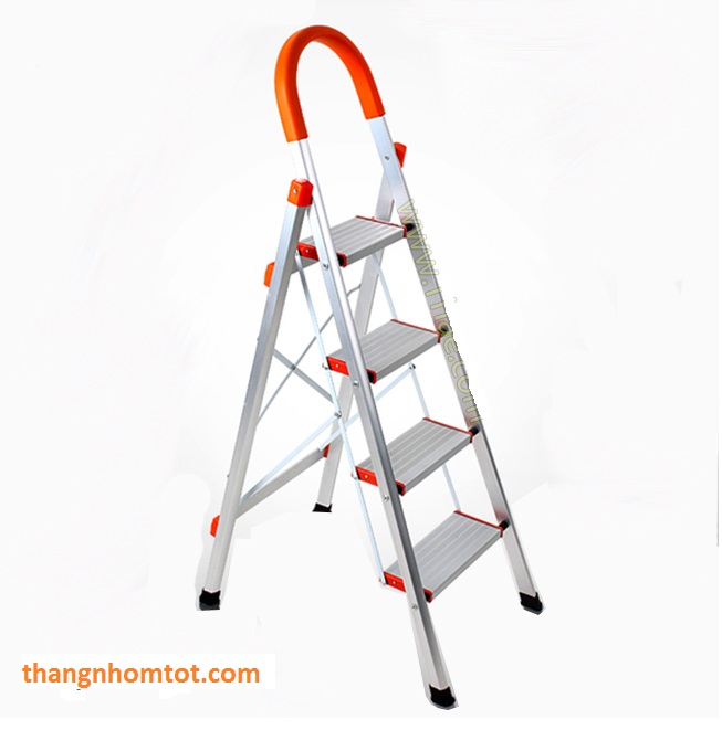- 4 bậc thang làm bằng nhôm bản ghế rộng cùng những đường chỉ giúp tăng khả năng bám dính và độ ma sát của chân khi bước lên thang.